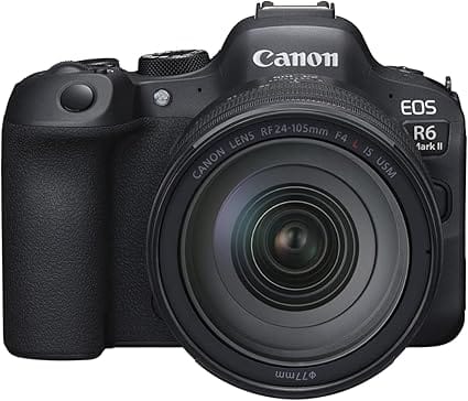 Buy from Amazon > Canon EOS R6 Mark II Mirrorless Camera RF24-105mm F4 L USM Lens Kit, Hybrid Full-Frame Camera, 24.2 Megapixel CMOS Sensor. Photo and Video Camera Capabilities, RF Mount